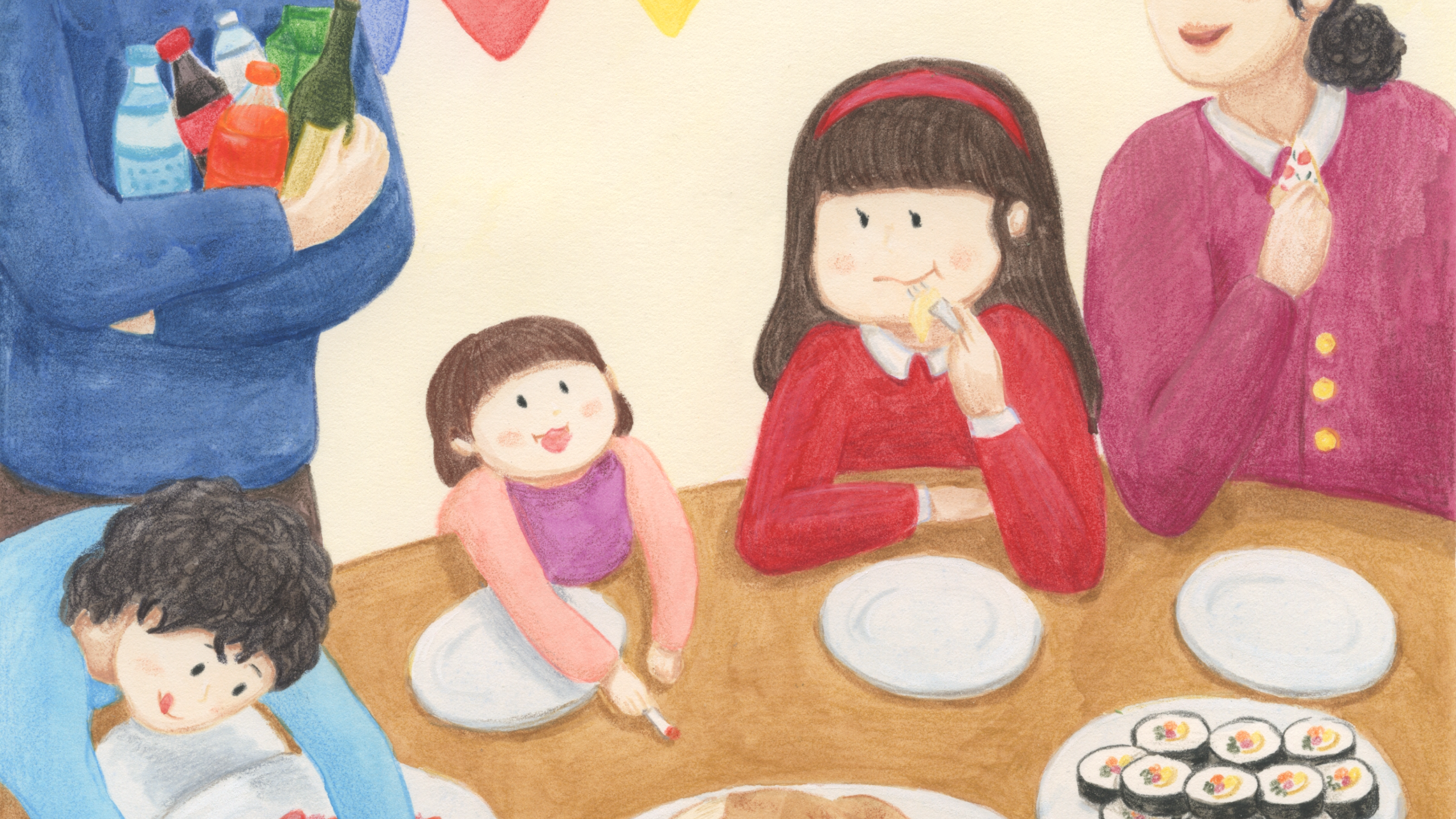 수채화와 색연필로 그렸습니다